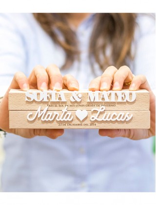 Personalitza la base per l'amor de la teva vida amb les vostres inicials amb relleu i una frase bonica, autèntica i emotiva.